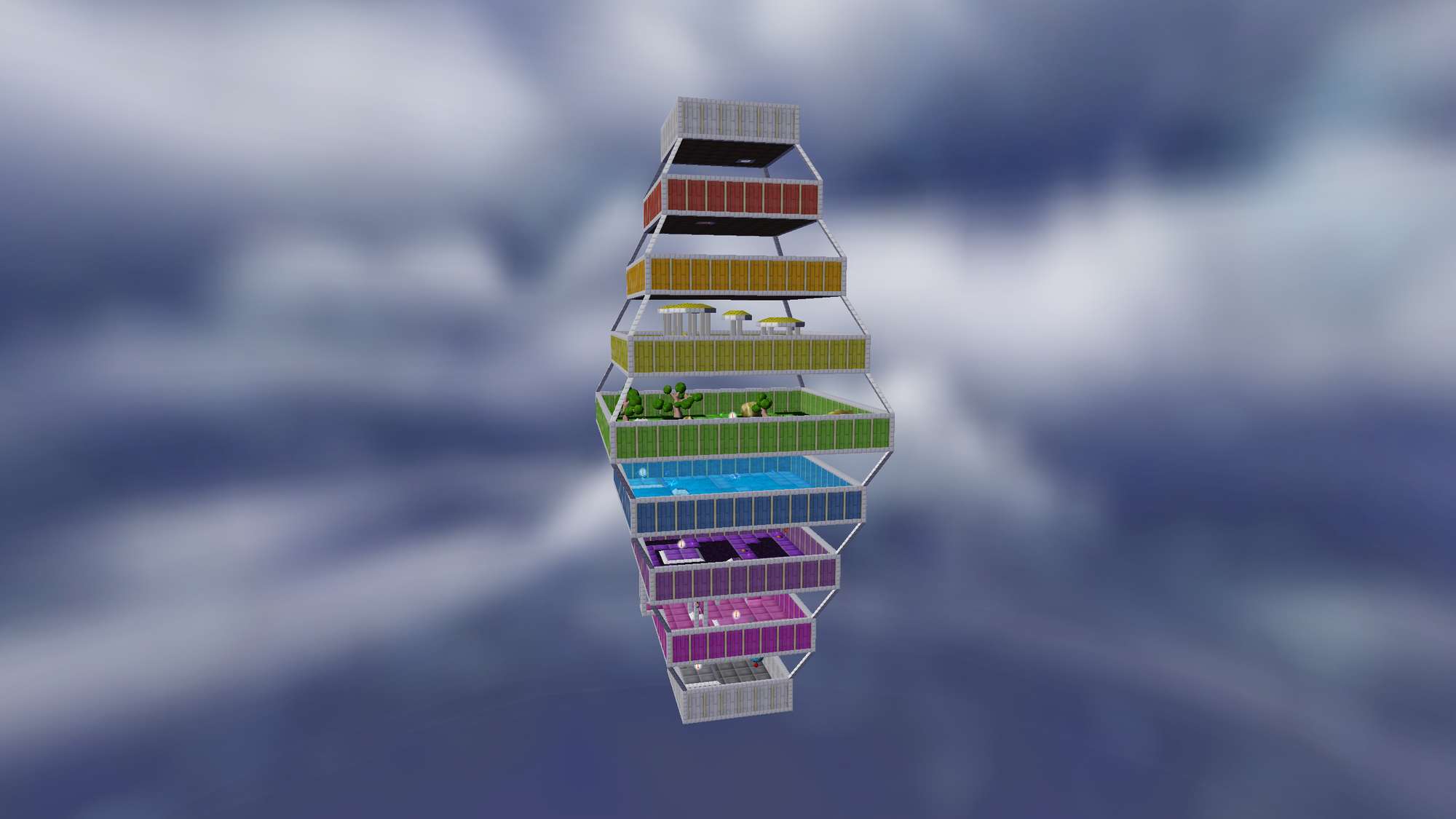 Drop down between these colorful floors while looting for gems!!